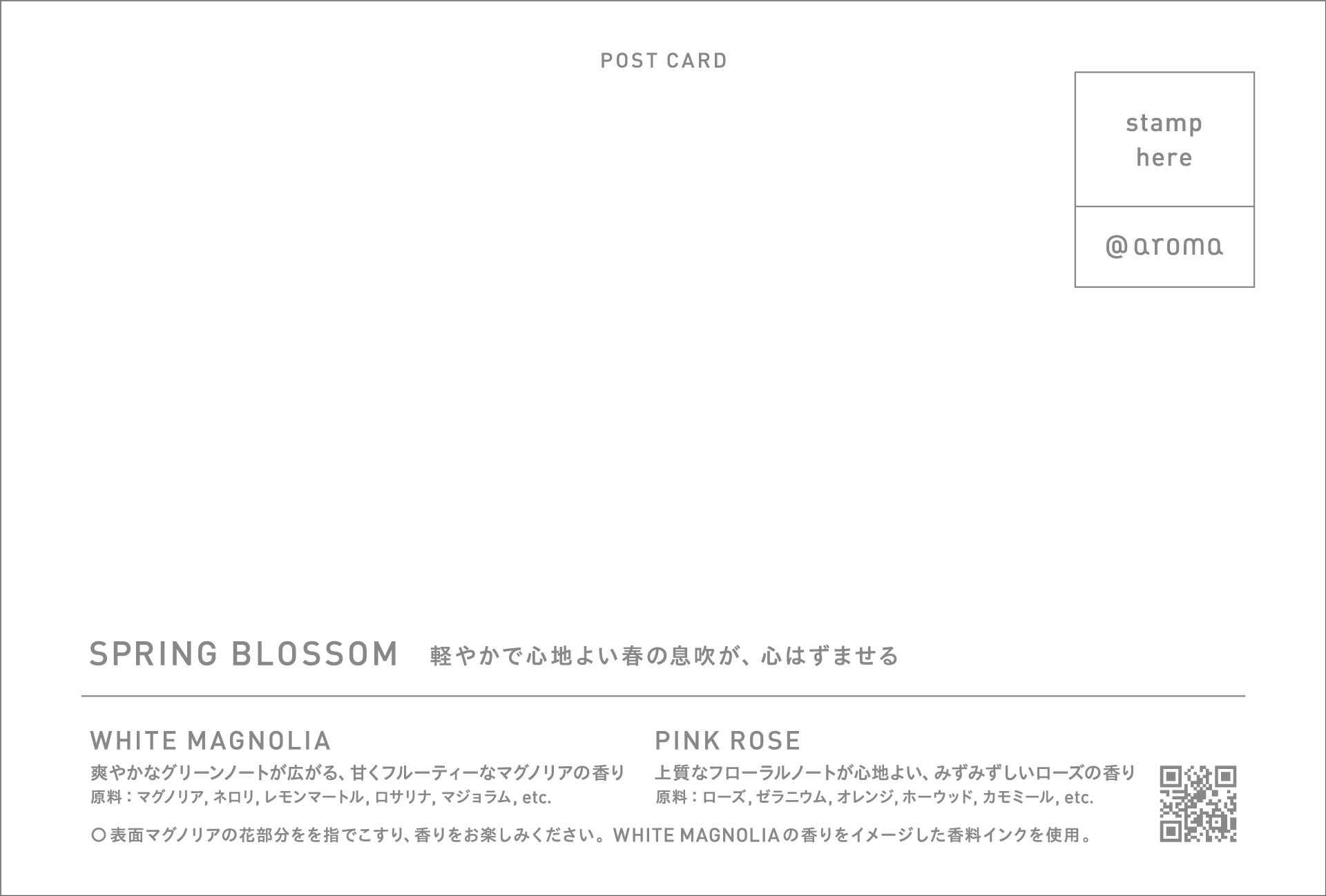 商品購入時の販促ノベルティ用のカード。コーティングされている香料インク部分をこすると香りがします。