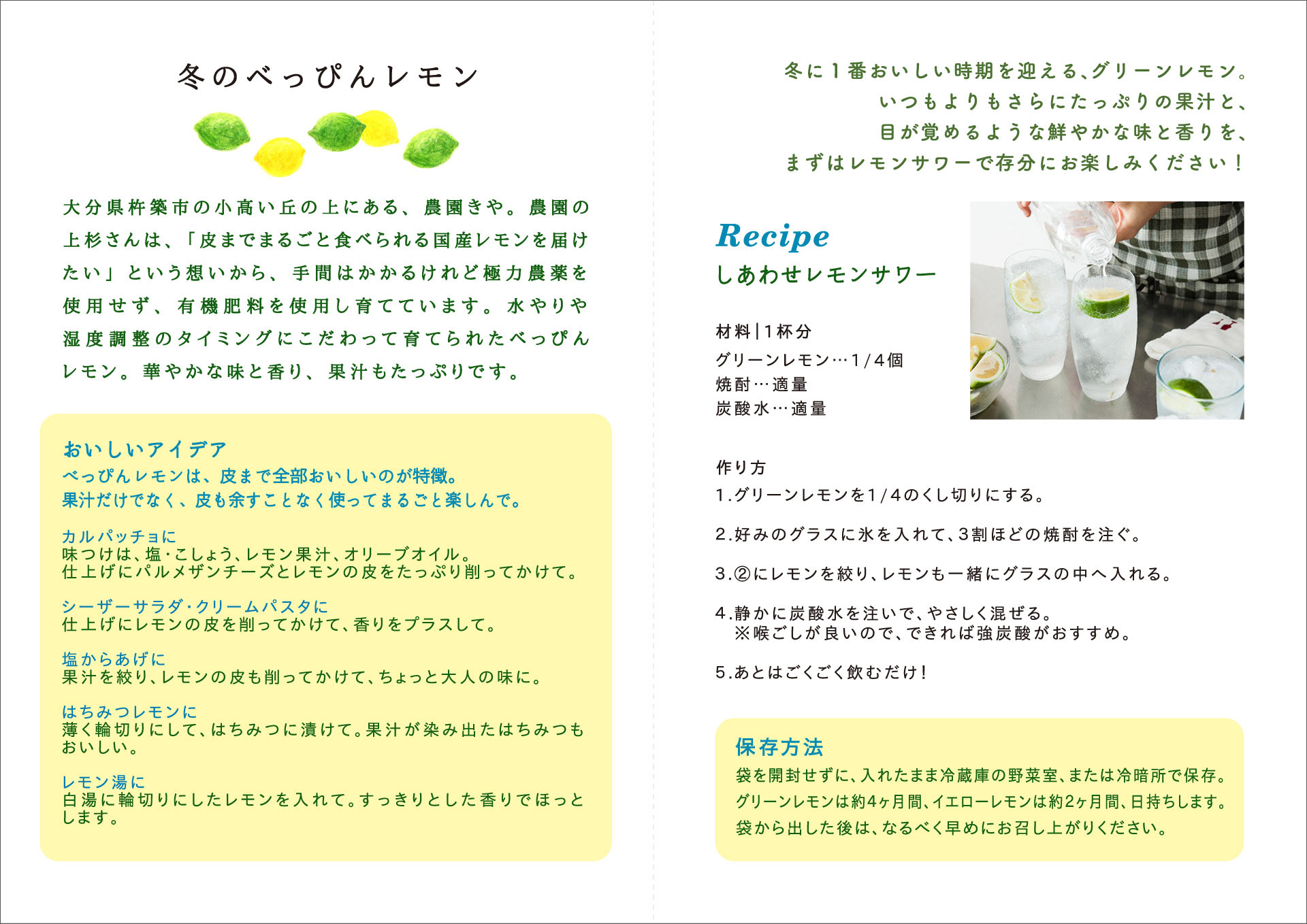 自社ECサイトでの生鮮食品販売のノベルティとして、食材を使用したレシピや美味しく食べられるアイデアを記載したリーフレットを制作。