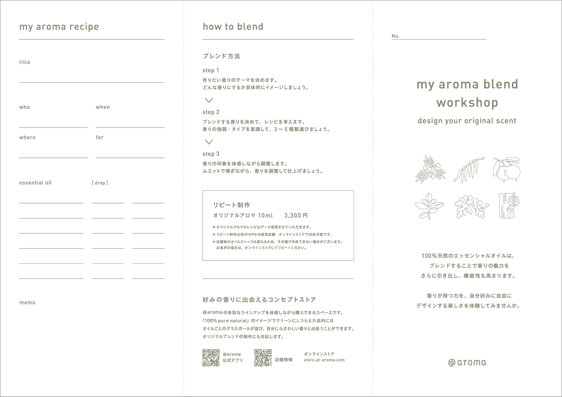 オリジナルのアロマオイルを作るワークショップの為のテキストブックを制作。